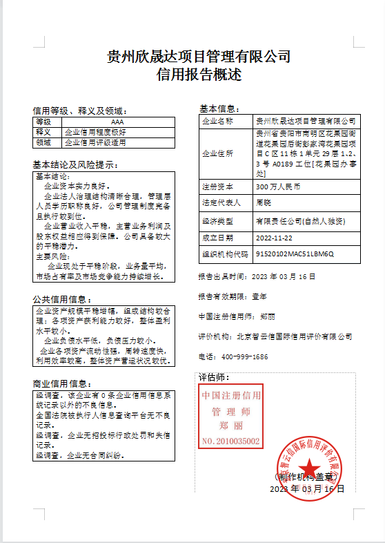 信用評(píng)價(jià)機(jī)構(gòu):北京智云信國(guó)際信用評(píng)價(jià)有限公司